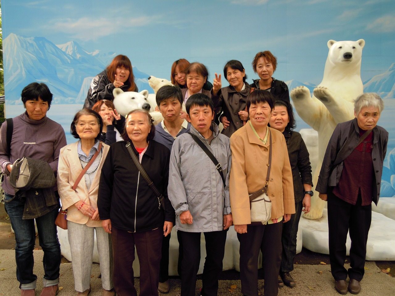 白クマと一緒に記念撮影